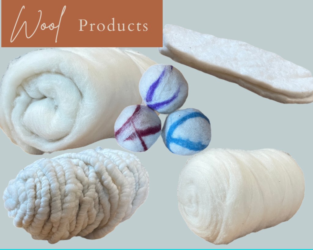 We are so excited to be able to offer select wool products from our sheep for your home! Our most popular seller are our dryer balls! We also have natural wool roving, rug yarn, wool bating and felted insoles to keep your feet warm this winter. Our wool is processed in a small Ontario woollen mill to make beautiful natural and sustainable products!